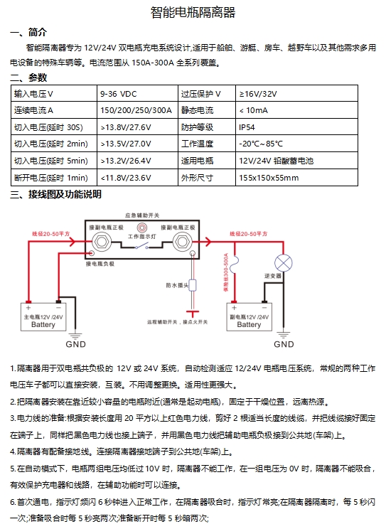 大電流款雙電瓶隔離器保護您的電瓶因過度放電而損壞